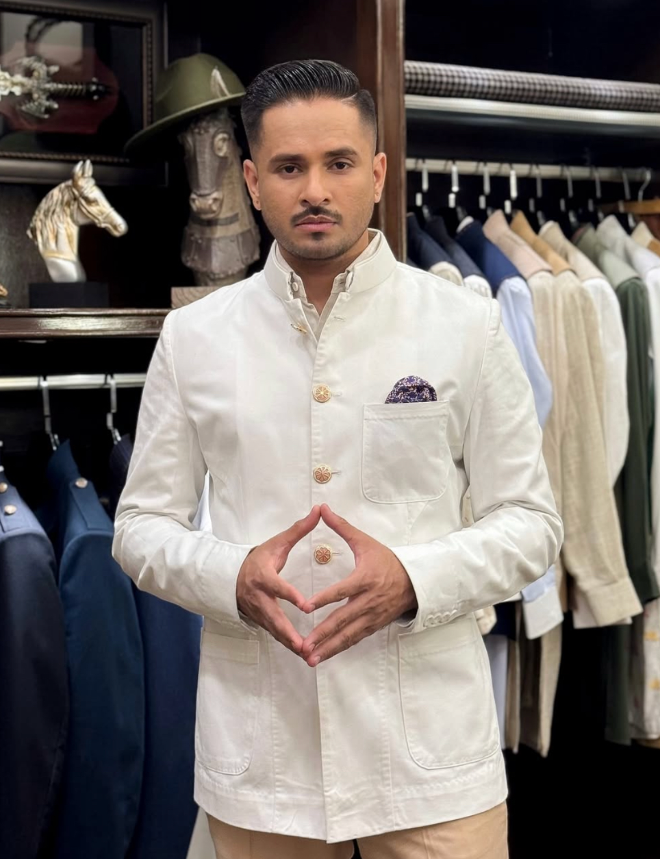 Experience royal elegance with this non-fused twill cotton Bandhgala, fully hand crafted without linings or fusings for a lightweight, breathable feel. Designed for a sharp, sophisticated look while keeping you comfortable in summer, it perfectly blends classic style with modern ease.